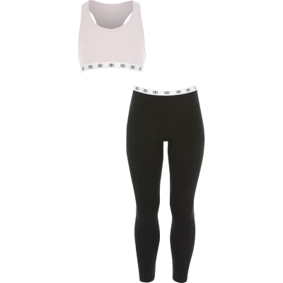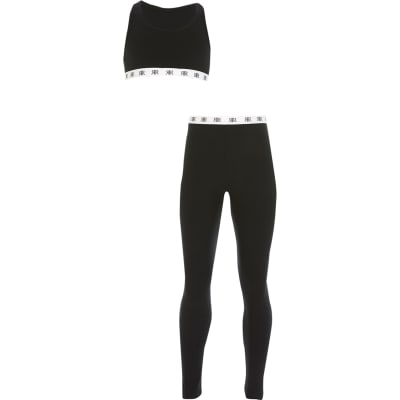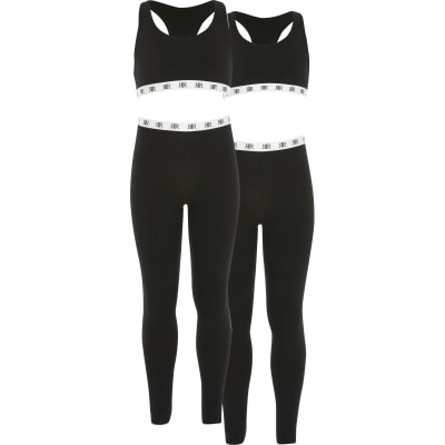 Girls Black Cropped Loungewear Set 2 Pack River Island