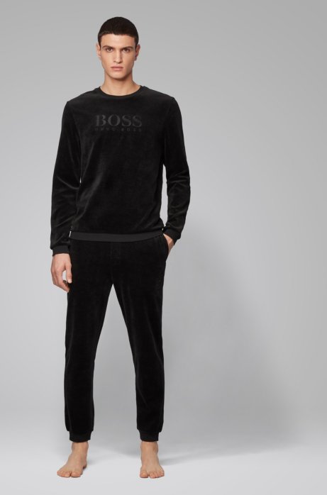 Boss Loungewear Logo Sweatshirt In Cotton Blend Velour