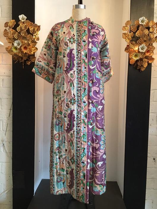 Vintage 70s Maxi Dress Evelyn Pearson Quilted Loungewear Robe