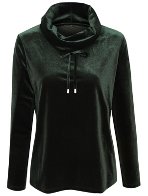 Dark Green Velour Cowl Neck Loungewear Top Women George