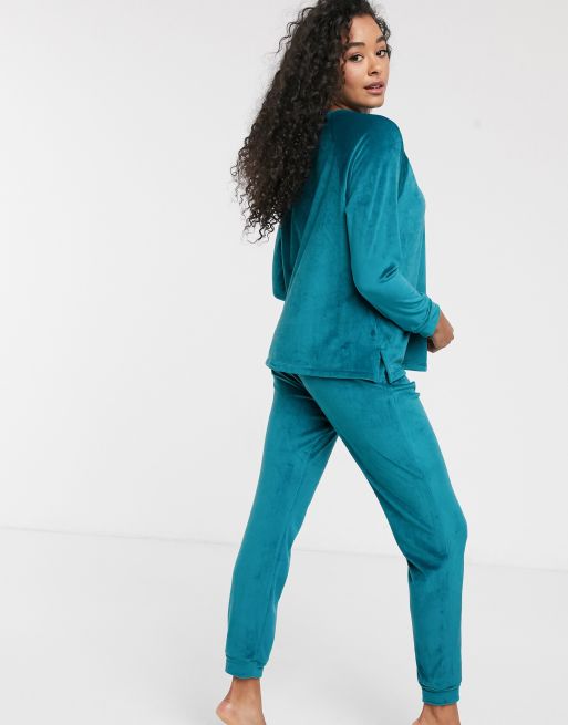Women Secret Velour Pearl Detail Loungewear Set In Green Asos