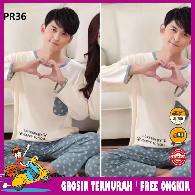 Jual Summer Loungewear Short Sleeves Long Pants Pajama Set Men