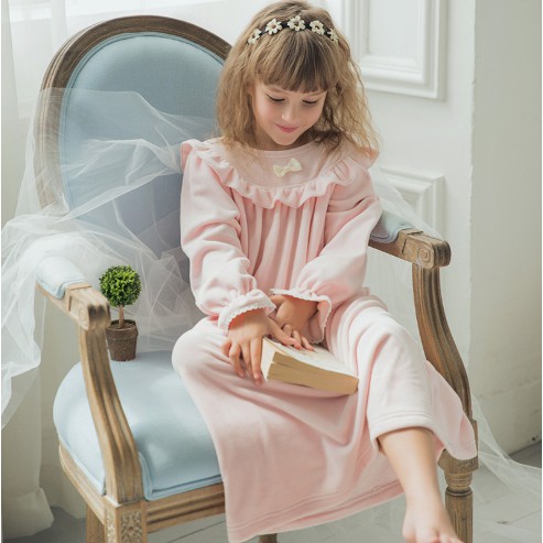 Girls Long Sleeve Vintage Nightgown Pricess Nightdress Sleepwear