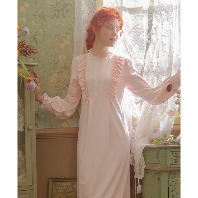 Women Vintage Victorian Nightgown Autumn Winter Sleepwear