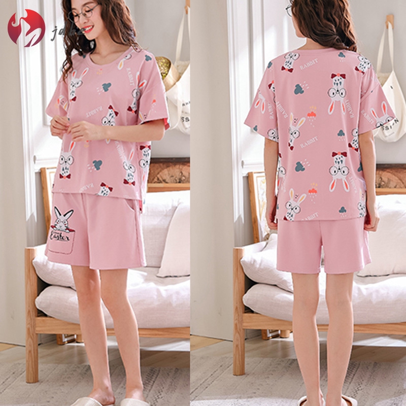 J Q Woman Pajamas Cotton 2019 Summer Shorts Pajama Sets Women Pink