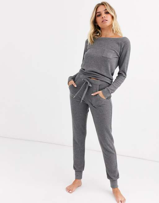 Grey Off Shoulder Loungewear Set Blake In 2020 Lounge Wear