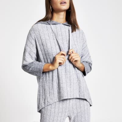 Grey Ribbed Oversized Loungewear Hoodie River Island