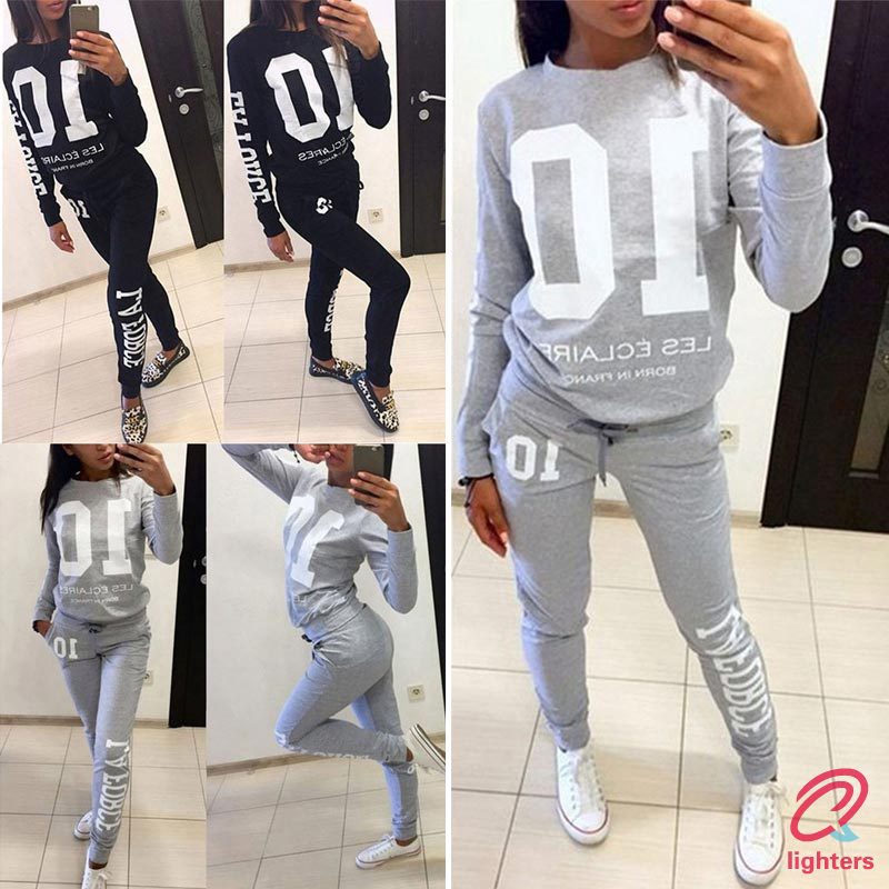 Women 2pcs Set Tracksuit Jogger Jogging Letter Print Sweatshirt