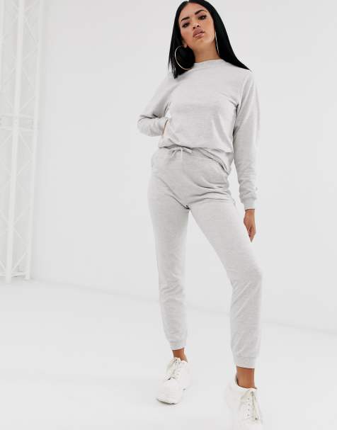 Womens New Ladies Grey Loungewear Set Sweatshirt Joggers Tracksuit