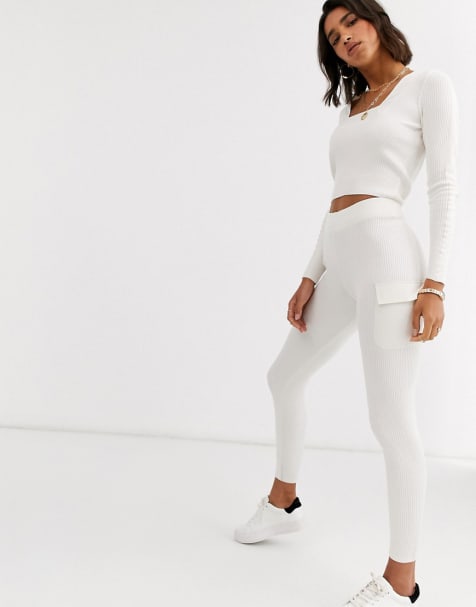 Ribbed Crop Loungewear Sets Inc Grey Knitted Femme Luxe Uk