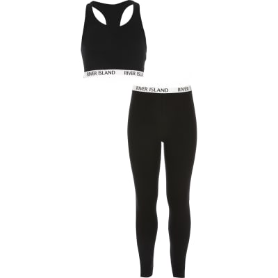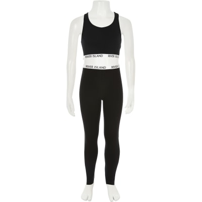 Girls Black Crop Top Loungewear Set River Island