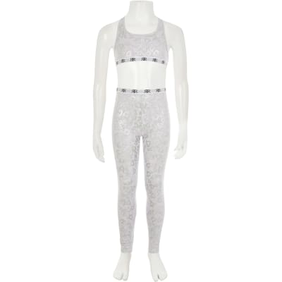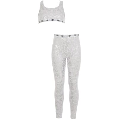 Girls Grey Heart Crop Top Loungewear Set River Island