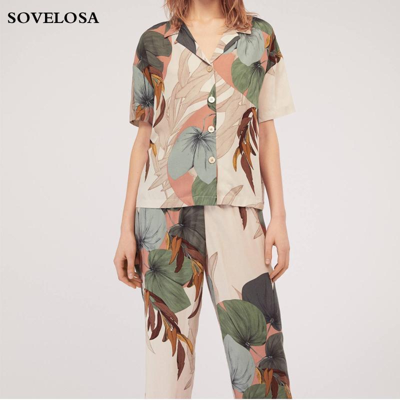 Satin Two Piece Set Women Sleepwear Silk Pajamas Lounge Set